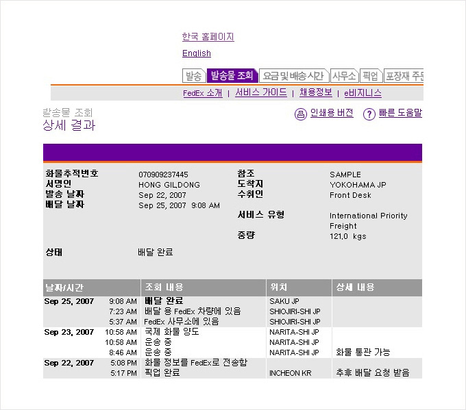 배달기간은 1~2일, 유류할증료는 매월변동입니다.